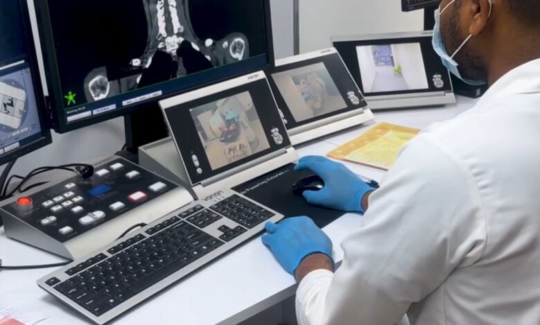 وفق احدث التقنيات العالمية وبجهود كوادر طبية ذات مهارات عالية ، أعلن مستشفى الأورام في محافظة النجف الاشرف عن إجراء أول عملية باستخدام تقنية SRS للجراحة الإشعاعية المجسمة والتي تعد من أحدث التقنيات العالمية لعلاج الأورام السرطانية دون تدخل جراحي ، في إنجاز طبي يعد هو الأول من نوعه على مستوى المستشفيات الحكومية في العراق، وتعتمد التقنية الجديدة على تسليط حزمة شعاعية دقيقة على الورم داخل الجسم والذي يغني المريض عن العمليات التقليدية ويقلل من الأعراض الجانبية والمضاعفات، كما تستخدم هذه التقنية في علاج الأورام المنتشرة في الدماغ والجسم، والتشوهات الوعائية، وحتى الأورام الحميدة، وتجرى الجلسات مجاناً داخل المستشفى الحكومي في حين أن تصل تكلفة الجلسات في القطاع الخاص إلى 100$ للجلسة الواحدة، والجهاز المستخدم من نوع Varian الأمريكي ويعمل بتقنيات متقدمة تشمل4D – 3D، VMAT، AMRT، وأخيرًا SRS، وتم تدريب الكوادر العراقية بخبرات أجنبية داخل وخارج العراق، ويجري العمل على تأهيل المزيد من الكوادر بدعم من وزارة الصحة.