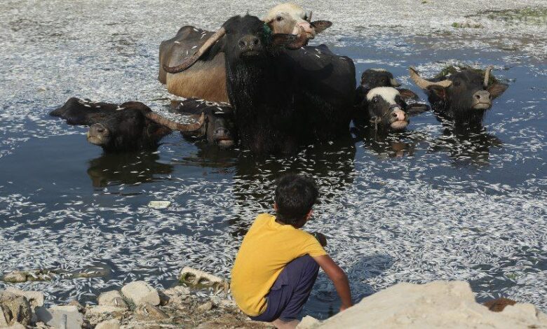 وتداول ناشطون مقاطع مصورة من قلب الهور تُظهر كميات كبيرة من الأسماك النافقة طافية على سطح المياه، في مشهد صادم، بينما تسبح الجواميس بينها، في ظل بيئة آخذة بالتدهور.