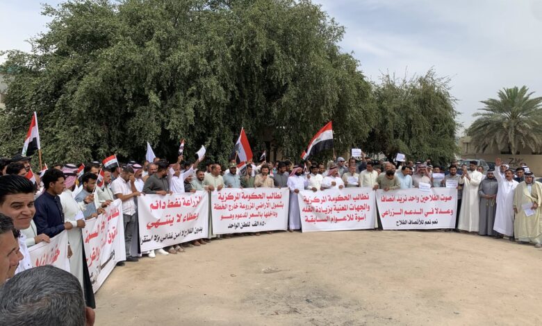 نظم مزارعو وفلاحو ست محافظات عراقية وقفة احتجاجية في النجف الأشرف، طالبوا من خلالها بصرف تعويضات الأضرار السابقة، ودفع مستحقات الحنطة والشلب لعام 2024، وإعفاء القروض.