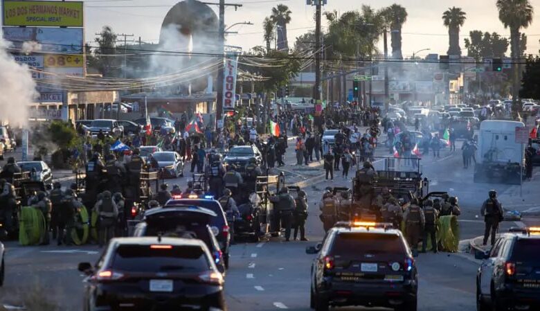 وتتصاعد التوترات لليوم الخامس على التوالي في لوس أنجلوس، بعد أن اجتاحت الاحتجاجات ضد إدارة الهجرة والكمارك المدينة، حيث اشتبك المتظاهرون مع قوات إنفاذ القانون وأضرموا النار في مركبات وسط المدينة.