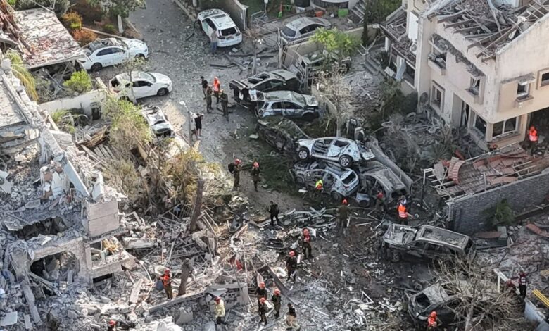 ووثقت صور حجم الدمار الذي خلفته الصواريخ الإيرانية في “ريشون لتسيون” جنوب تل أبيب وأسفرت عن مقتل اثنين وإصابة العشرات.