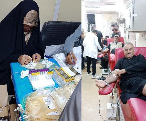 في أجواء من الإيثار والتضحية والفداء ضمن مدرسة أبي عبد الله الحسين عليه السلام تبرع الزائرون بأكثر من 1000 قنينة دم دعما لمرضى الثلاسيميا وأمراض أخرى .