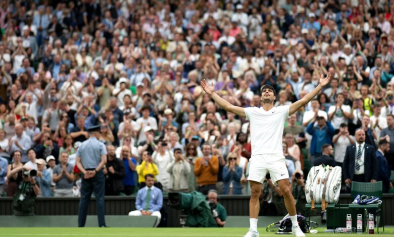 ويطمح ألكاراز هذا العام لتحقيق لقبه الثالث تواليًا في ويمبلدون، ليعادل بذلك عدد ألقاب ماكنرو وبيكر في البطولة الشهيرة، علمًا أنه لم يتعرض لأي خسارة في البطولة منذ عام 2022، حين ودع المنافسات من الدور الرابع أمام يانيك سينر.