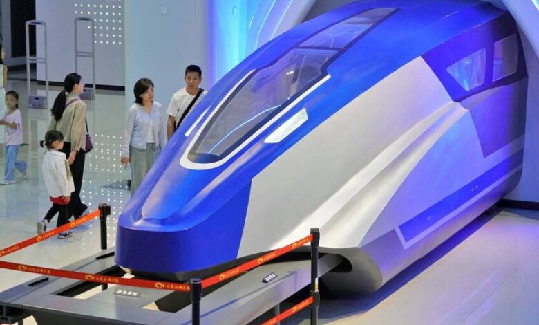 كشفت شركة “CCRC” الصينية عن نموذج لقطار ركاب يعمل بمبدأ الوسادة المغناطيسية، تصل سرعته إلى 600 كلم/ساعة.