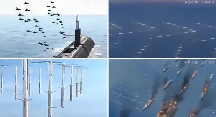 وتعمل الصين على تطوير تقنية جديدة متقدمة تتيح لغواصاتها شن هجمات مدمرة على حاملات الطائرات عبر استخدام أسراب من المسيّرات البحرية غير المأهولة. تقوم هذه الاستراتيجية على مبدأ التسلل الصامت، حيث تقترب الغواصة من هدفها دون أن تُكتشف، لتطلق في اللحظة الحاسمة سربًا كبيرًا من الطائرات المسيّرة تحت الماء. هذه الأخيرة تنفذ هجومًا منسقًا يهدف إلى إغراق الدفاعات المضادة للطائرات أو تعطيلها، وفتح ثغرات تسمح بتوجيه ضربات دقيقة ومكثفة ضد الحاملة نفسها.