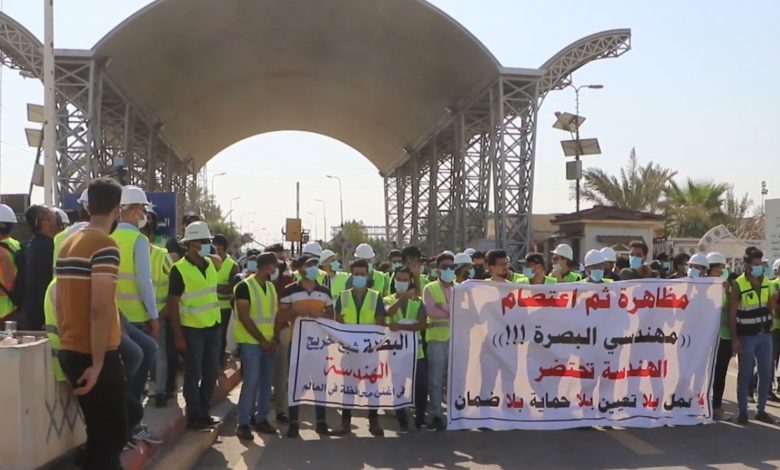 وقال مصدر محلي في البصرة: إن “الاعتصامات أمام بوابة شركة نفط البصرة (المكينة)، تتواصل لليوم الثالث على التوالي، حيث يعتصم مهندسون وجيولوجيون واختصاصيون في المجالات النفطية، ويرفضون المغادرة الى منازلهم قبل حسم موقفهم من التعيين”.