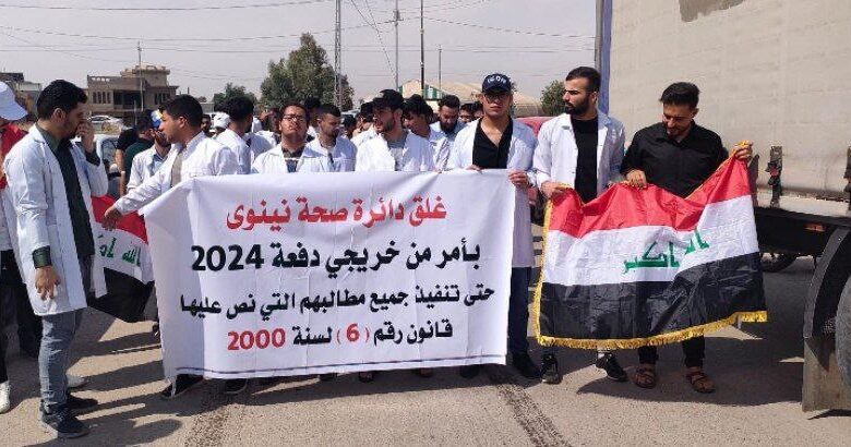 وقال مصدر محلي: إن “المئات من خريجي المجموعة الطبية من دفعات 2023 و2024، تظاهروا، أمس الثلاثاء، أمام مبنى دائرة صحة نينوى في مدينة الموصل، رفضاً لما وصفوه بـ”القرارات المجحفة”، الصادرة عن الاجتماع الأخير الذي جمع رئيس الوزراء بوزير الصحة ولجنة الصحة النيابية بشأن ملف التعيينات.