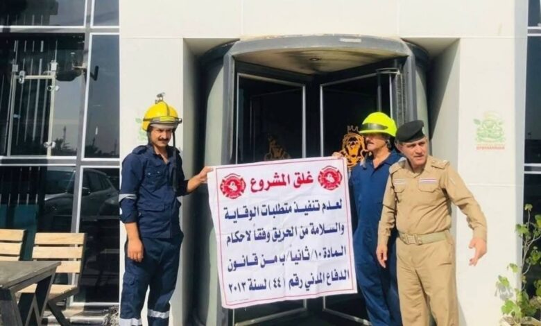 وباشرت كوادر الدفاع المدني بإغلاق العديد من البنايات التي تفتقد لشروط السلامة في بغداد والمحافظات.