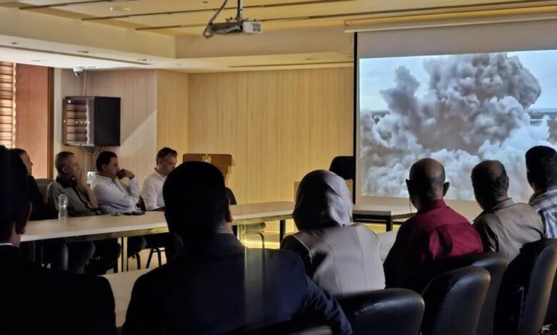 وفي ختام العرض أوصى الحاضرون بضرورة تعميم هذا الشريط وترجمته إلى عدة لغات، وذلك “لفضح ممارسات إسرائيل من تجويع وتعطيش ومنع إدخال الإحتياجات الإنسانية والغذائية والطبية، وتدمير كل المرافق والخدمات الحيوية”.
