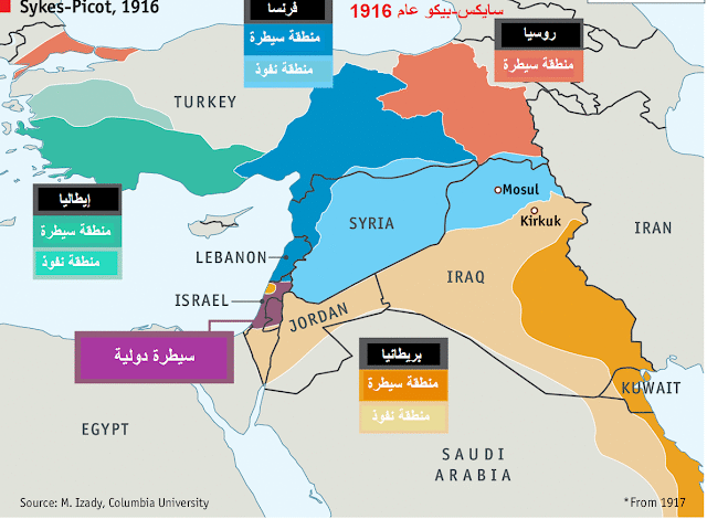 أيضا ماذا عن دول اتفاقية سايكس- ييكو في بلاد الشام التي كانت خاضعة للإمبراطورية العثمانية، حيث تقاسمت بريطانيا وفرنسا تركة الرجل المريض في الحرب العالمية الأولى ووضعت جدودا للبنان وسوريا والعراق ونصبت حكاما عليها وخصصت وضعا خاصا لفلسطين لتكون دولة لليهود، وهي الاتفاقية التي فضحها الروس بعد الثورة البلشفية 1917؟