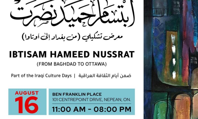 وذكر بيان صادر عن “مهرجان فعاليات أيام الثقافة العراقية”: ان “المهرجان حرص على أضافة بعد بصري راقٍ ومعبر عن الهوية الفنية التشكيلية المتفردة التي تجمع بين الجذور العراقية والابداع الفني، واخترنا أن نحتفي بتجربة الفنانة التشكيلية المقيمة في اوتاوا ابتسام حميد نصرت التي تعد من التشكيليات العراقيات المغتربات في كندا منذ سنوات”.
