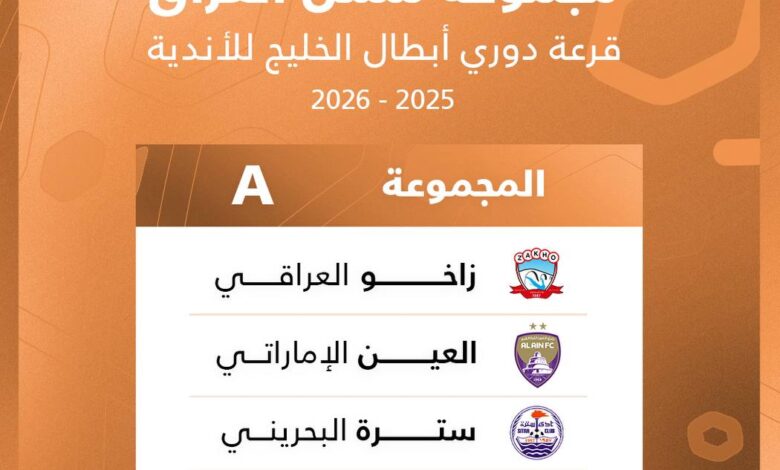 وجرت مراسيم قرعة دوري أبطال الخليج للأندية، بمشاركة نادي زاخو، وأسفرت عن وقوعه في المجموعة “A” برفقة العين الإماراتي، والقادسية الكويتي، وسترة البحريني.