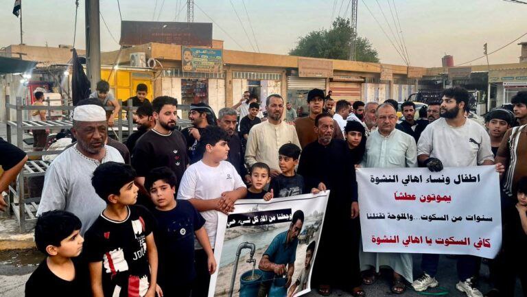 طالب أهالي النشوة، شمالي البصرة، بحلول فورية لمعالجة أزمة شح وملوحة مياه الشرب، خاصة بعد امتداد تأثيرات التلوث الى السكان المحليين وارتفاع معدلات الإصابة بالأمراض الجلدية، فضلا عن نفوق الكثير من المواشي والحيوانات وتلف المزروعات، فيما لوحوا بإغلاق حقل مجنون النفطي في حال تجاهل مطالبهم.