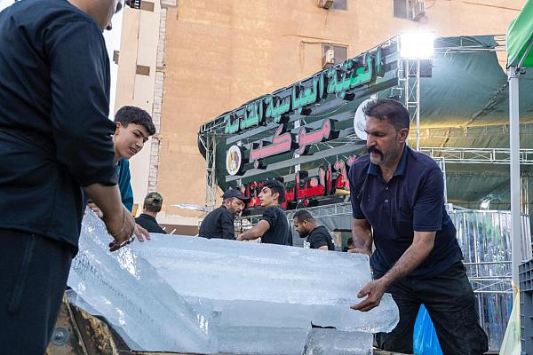 في مشهد يجسد الروح الوطنية ليس في جبهات القتال، وانما في تقديم الخدمة للزائرين، حيث قدّم الحشد الشعبي، 5 أطنان من الثلج بشكل يومي للمواكب المشاركة في خدمة زائري مدينة النجف الأشرف، بذكرى شهادة النبي الأكرم محمد (صلى الله عليه وآله).