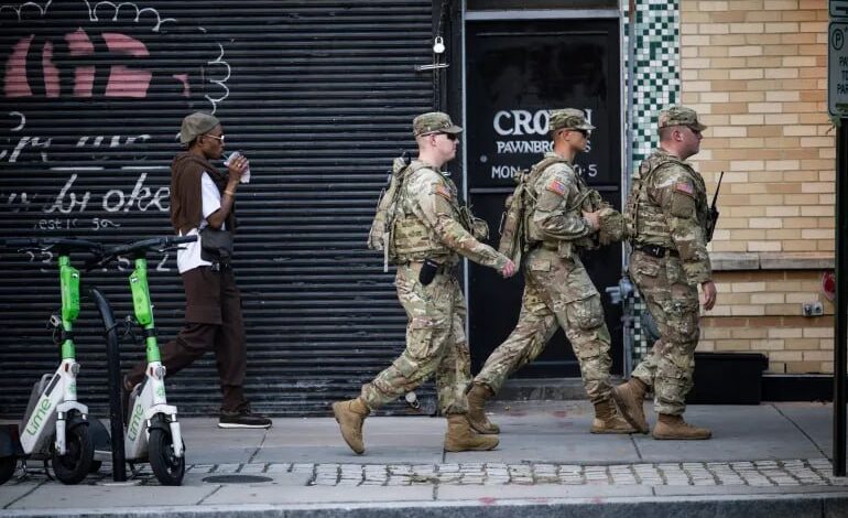 انتشرت بعض وحدات قوات الحرس الوطني الأمريكي في واشنطن، وهي تحمل الأسلحة النارية بتوجيه من ترامب.