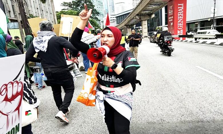 وانطلق المتظاهرون من أمام مطعم ماكدونالد في حي الأعمال (بوكيت بينتانغ)، حيث هتفوا بمقاطعة الشركات التي يتهمونها بدعم الاحتلال الإسرائيلي، ثم توجهوا إلى ساحة برجي بتروناس وسط كوالالمبور، وهم يهتفون ضد ما يعتبرونه رعاية أميركية كاملة لجرائم الإبادة الإسرائيلية بحق الشعب الفلسطيني، واتهموا واشنطن بالاستمرار في إمداد الكيان المحتل لفلسطين، بالسلاح والمال والغطاء السياسي.