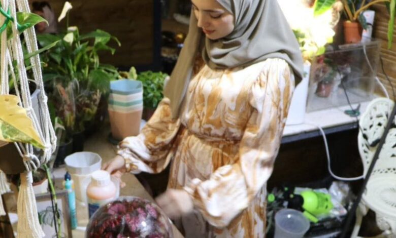 حبها للنباتات والزهور دفعها لتحويل شغفها إلى مشروع عملي بدأ من المنزل، حيث كانت تصمم الزينة وتغلف الورود وتعتني بالنباتات، ثم تبيعها عبر منصات التواصل الاجتماعي.
