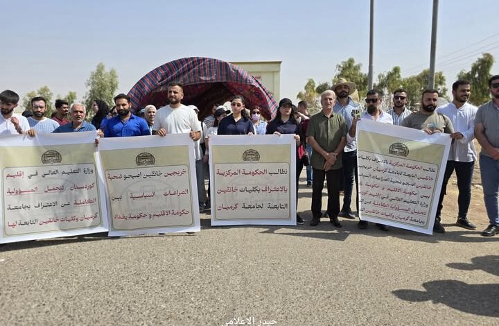 وقال منسق الاعتصامات رازان ماجد، إن “الخريجين في خانقين يعانون غيابَ الإنصاف، مقارنة بزملائهم في جامعات الوسط والجنوب وحتى جامعات إقليم كردستان، حيث رُفض الاعتراف بشهاداتهم الصادرة من الكليات التابعة لجامعة كرميان في خانقين، رغم أن الجامعة معترف بها على مستوى حكومة الإقليم والحكومة الاتحادية”.
