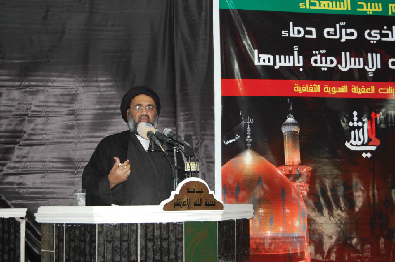 واعتبر الخطيب ان من اراد التطبير فليطبر عدوه ومن أراد ان يريق دمه فساحات القتال مفتوحة لإراقة الدماء ومن أراد ان يقول لا نريد ان نعيش الذل والهوان كما رفض الإمام الحسين (عليه السلام) فليستعد للدفاع عن الحرائر والأعراض والأموال والأنفس كما حدث في العراق حيث كنا قاب قوسين على انهيار بغداد وكربلاء والنجف والمقدسات اين المطبرون ؟ أين الذين يسيرون على الجمر ؟ أين اصحاب ادماء الاجساد ؟ ارجعوا الى الشيخ الوائلي (رحمه الله) في بعض محاضراته والى بعض علمائنا الاجلاء في محاضراتهم وبماذا يصفون هذه الظواهر التي انتشرت في الساحة العراقية وطالب سماحته بتصدير الصور التي عكسها أهل البيت (عليهم السلام) الى الخارج أو الى الناس ، مبينا أن الصبر صفة الكمال فلا يعد الانسان غير الصبور كاملا والعقيلة زينب (عليها السلام) عالمة غير معلمة فهيمة غير مفهمة ومن وظائفها حفظ الامامة حيث حفظت الامامة وأوصلت هذا النور والضياء وهي حلقة من الحلقات ولولا زينب لضاعت ثورة الامام الحسين (عليه السلام) ولذلك لما أمر اللعين عبيد الله بن زياد بقتل الإمام السجاد (عليه السلام) احتضنته وقالت له (اقتلني ان اردت قتله) فتركوها فحفظت الوصية وحفظت شخص الإمام (عليه السلام) ودافعت عن الإمامة وبرزت هذه الحقيقة فهي لا تختلف عن هذه الأسرة الطاهرة وتصدت في موقف لا يستطيع أي انسان ان يقف به وهي كأمها الزهراء (عليها السلام).