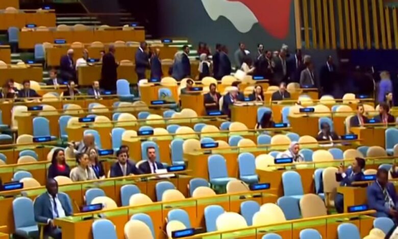 أوضح اجتماع الجمعية العامة للأمم المتحدة لهذا العام، أن “إسرائيل” تعيش حالة من الانحدار السياسي غير مسبوقة. حيث بلغ عدد الدول التي تعترف رسميًا بـ”فلسطين” 153 دولة، أي نحو 80% من مجموع الدول الأعضاء في الأمم المتحدة البالغ عددها 193.