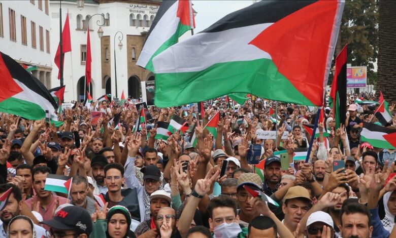 شعارات المحتجين ركزت على وقف تصدير الأسلحة إلى كيان الاحتلال، وملاحقة المسؤولين عن الانتهاكات أمام القضاء الدولي.