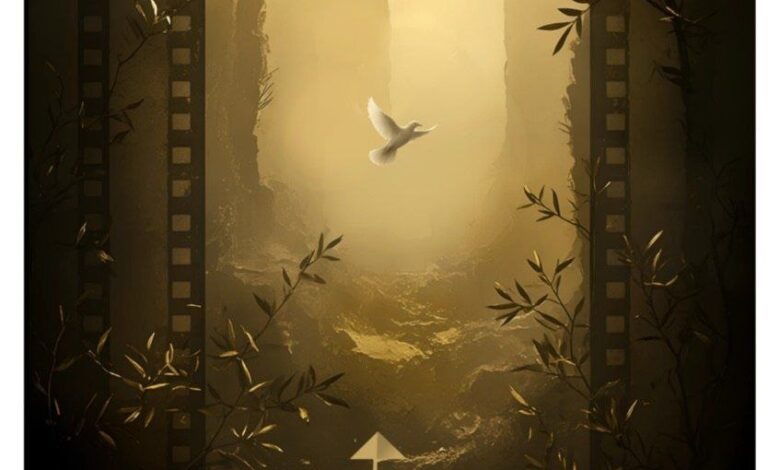 أضاف البيان: “تغمر المشهد درجات الذهب والبرونز في تدرجات ضوئية تتسلل من عمق الصورة نحو الأفق وكأنها شروق جديد ينبثق من بين الظلال، بينما تنمو أغصان الزيتون على أطراف الكادر لتستعيد دورة الحياة، ويطوّق المشهد شريطان سينمائيان يحولان القصة إلى ذاكرة قابلة للمشاركة على الشاشة”.