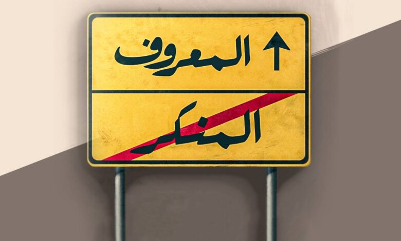 أخلاقياً: بر الوالدين، الصدق، كظم الغيظ من المعروف، وأما عقوق الوالدين، والكذب وسرعة الغضب والانحراف عن خط اللَّه سبحانه في قول أو فعل من مصاديق المنكر.