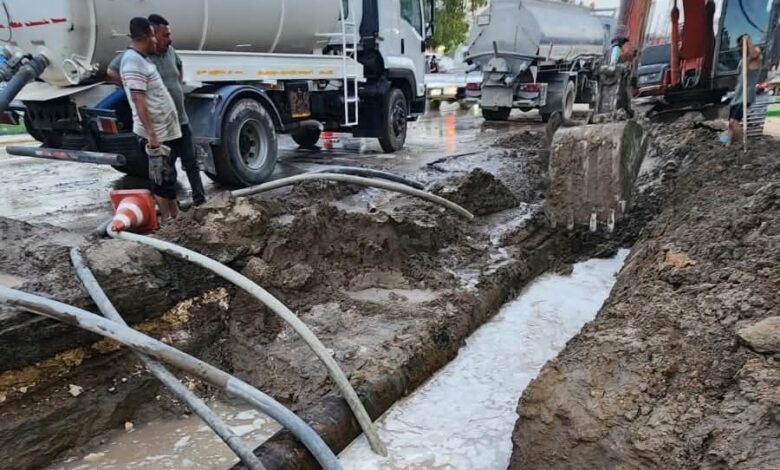 كسر أنبوب يغرق محلة ٧٦٨ في العبيدي