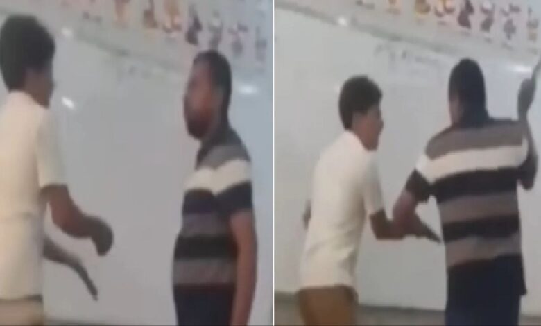 مقطع الفيديو يظهر مدرساً يضرب طالباً بالعصا على يديه عدة مرات، ثم على ساقيه بعد محاولته حماية نفسه، على وفق ما تظهره اللقطات المصورة.