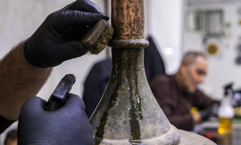 وأضاف، أن “ملاكات المختبر باشرت أعمال صيانة دقيقة للشمعدان شملت ترميم قاعدته المتضررة بفعل الزمن، تمهيداً لعرضه في القاعة المتحفية الرئيسة”.
