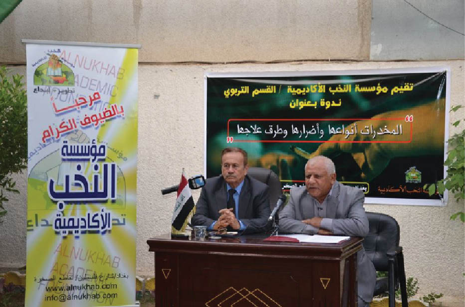 أقامت مؤسسة النخب الاكاديمية، ندوة لمناقشة مخاطر ظاهرة المخدرات وأنواعها وسبل معالجتها وأضرارها في مقر المؤسسة, لوضع الحلول الناجعة التي تدرأ تفشي هذه الظاهرة في المجتمع بعد ارتفاع منسوبياتها وكثرة المتعاطين للمخدرات, وما تنتجه من آثار سلبية سواء كانت مادية أو معنوية على صعيد المجتمع, وتمت مناقشة الظاهرة من قبل اساتذة مختصين, لاسيما بعد اقرار مجلس النواب قانوناً يحظر الخمور, وما سينتج عنه من رواج لتعاطي المخدرات من قبل المدمنين, وهو ما يتطلب تكثيف عمل المؤسسات المجتمعية والتربوية للتحذير من خطر انتشار هذه الظاهرة وسلبياتها على المجتمع وعلى شريحة الشباب على وجه الخصوص.