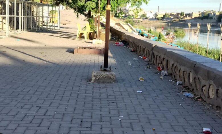 شكاوى من تراكم النفايات قرب مقاهي ضفاف دجلة