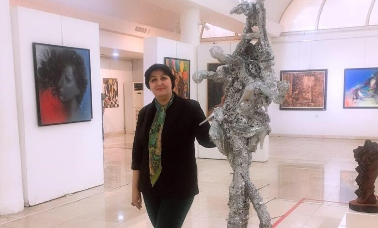 وتابعت :إن” أول ما يواجه المتلقي أمام أعمالها هو ذلك التحوّل الغامض بين هشاشة المادة وقوة المعنى إذ تبدو منحوتاتها وكأنها أجساد تنبض من داخلها تنمو وتتلوى وتنهض نحو الأعلى حتى تبدو الألياف النباتية كما لو كانت تنفصل عن أصلها الأرضي وترتفع بحركة خفية نحو الفضاء فيتحول النحت إلى طقس روحي يلامس الوجود ويتجاوزه”.