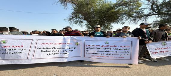 واكدوا في تظاهرة امام البنك المركزي في البصرة ، رفضهم للتعليمات المفاجئة والصادرة من البنك المركزي، والتي تسبّبت بعرقلة صرف الدولار المستحق للشركات، التي يضر آلاف العوائل العراقية التي تعتمد على رواتب موظفي هذه الشركات.
