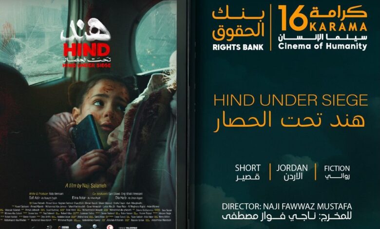 حفل افتتاح الدورة الجديدة من مهرجان كرامة، التي تحمل عنوان “بنك الحقوق”، تُوّج بعرض الفيلم الروائي الأردني القصير “هند تحت الحصار” لمخرجه ناجي سلامة على المسرح الرئيسي في المركز الثقافي الملكي، يسبقه عرضُ الفيلم الهندي التحريكي “بلو” للمخرج راجيف بي كي.