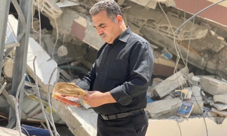 سمير منصور.. بائع الكتب الوحيد على انقاض غزة