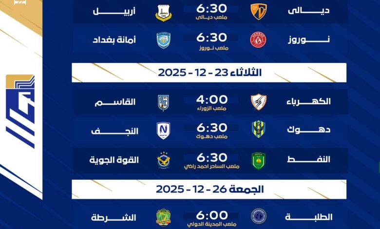 وأشار إلى أن الاتحاد العراقي لكرة القدم، بالتنسيق مع “لاليغا”، قرر انطلاق مباريات الجولة الثامنة يوم الإثنين المقبل على أن تُختتم يوم الاحد من الاسبوع الذي يليه لتجنب أي تعارض مع مشاركة الأندية العراقية في البطولات الخارجية، مؤكداً أن البرنامج الجديد تم وضعه بما يتناسب مع مواعيد دوري النجوم وضمان إكماله وفق الجدول المحدد.