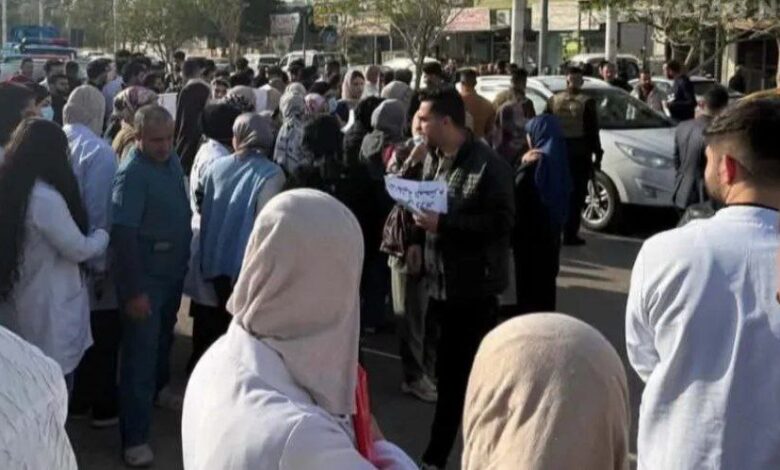 نظمت كوادر مستشفى خانقين الصحية وقفة احتجاجية داخل المستشفى، مطالبة بوضع حد للاعتداء والضغوط التي تتعرض لها أثناء أداء الواجب.