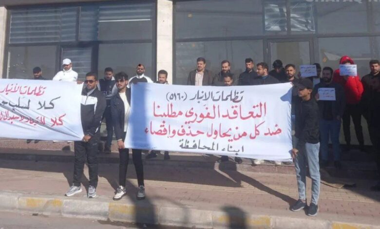 وطالب منسق الاحتجاج” الجهات المعنية بالنظر إلى أوضاع المشمولين بملف الملحق وإنهاء معاناتهم، عبر الإسراع بحسم إجراءات التعاقد أسوة ببقية الملفات التي جرى حلها سابقاً” .