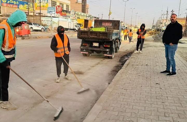 وتضمنت الحملة تنفيذ أعمال رفع النفايات، وكنس وتنظيف الشوارع العامة، فضلًا عن أعمال غسل الأرصفة، ورش الشارع، ومعالجة المعوقات الخدمية، إضافة إلى متابعة عمل الآليات داخل الأحياء السكنية، بما يسهم في تحسين الواقع الخدمي والبيئي للمنطقة.