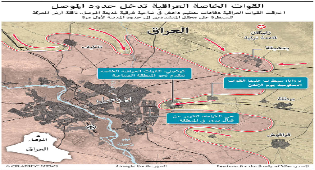 أكد المتحدث بأسم جهاز مكافحة الارهاب صباح النعمان، ان قوات الجهاز دخلت في “حرب شوارع” مع داعش الارهابي وهي مرحلة صعبة في ارض المعارك, عاداً تلك المرحلة من اصعب المراحل, وتحتاج الى التدقيق والتأني والتمييز بين المدنيين والارهابيين, خاصة ان الارهابيين قد عمدوا الى تغيير ملابسهم ودخلوا مع المدنيين . وأضاف ان قوات جهاز مكافحة الارهاب مازالت في مرحلة تطهير وتفتيش الاحياء السكنية التي تمت السيطرة عليها خلال المدة الماضية , مؤكداً ان هناك تدقيقا وتفتيشا بين “العوائل النازحة” للبحث عن ارهابيين حسب معلومات استخبارية وصلت الينا. وتابع النعمان: تم انشاء دفاعات أمامية للحيلولة دون استهداف هذه الاحياء المحررة من قبل الدواعش بالعجلات المفخخة أو الانتحاريين , مضيفا ان جهاز مكافحة الارهاب سيتقدم لتطهير أحياء اخرى وصولا الى استكمال الاهداف الموضوعة من جهة الساحل الايسر .وأضاف: ليست هناك معوقات اثناء تقدم قوات جهاز مكافحة الارهاب, ولكن هناك تأنياً بالتقدم حفاظا على حياة المدنيين من جهة وحياة مقاتلي جهاز مكافحة الارهاب من جهة اخرى , لافتا الى ان حرب الشوارع عامل الوقت فيها غير مهم , قياسا بعامل الدقة والتمييز بين اهالي المناطق والارهابيين . من جانبه، أكد المُشرفُ على عمليات الموصل الفريقُ الركن عبد الوهاب الساعدي، ان قطعات جهاز مُكافحة الارهاب ، تقفُ الآن على اعتاب احياء القادسية وعدن ، بعد تحرير المساحات القريبة منها ، لافتاً الى ان القوات فجرت ايضا ثلاث عجلات مُلغمة ، اثناء عملية تطهير حي الانتصار في الموصل . الساعدي وفي حديث لـه قال: قطعاتنا الامنية مازالت مستمرة بالتقدم نحو مركز الموصل ، مبيناً ان القطعات العسكرية في الجانب الايسر هي الان التي تحرر المدن داخل الجانب الايسر من المحافظة أما بالنسبة للمحور الجنوبي هي القطعات التي تتهيأ للدخول للجانب الايمن . وأضاف الساعدي: هناك جهود استخبارية كبيرة تقوم بها القوات الامنية بالاضافة الى جهاز الامن الوطني في التدقيق والبحث عن المطلوبين في المناطق التي تحررت. وفي السياق تمكنت قوات الجيش من تحرير 9 قرى شمال نهر الزاب الكبير في محافظة نينوى. وذكر بيان لوزارة الدفاع ان اللواء المدرع الخامس والثلاثين واللواء المشاة الآلي السابع والثلاثين الفرقة المدرعة التاسعة وفوج مغاوير قيادة عمليات تحرير نينوى، تمكنوا من تحرير عددٍ من القرى شمال نهر الزاب الكبير باتجاه منطقة السامية الممتدة على نهر دجلة وصولاً إلى مدينة الموصل. وأضاف البيان، ان القوات كبدت عصابات داعش الإرهابية خسائر كبيرة بالأرواح والمعدات، كما عثرت قواتنا البطلة خلال تحرير تلك القرى على عددٍ من الأنفاق كان يستخدمها الإرهابيون للتسلل والتنقل من مكان إلى آخر لاستهداف وإيقاف تقدم القوات. من جانبه، أكد مدير ناحية الشورة ان الشرطة الاتحادية تعمل على رفع المتفجرات لإعادة النازحين الى مناطقهم، اذ اعلن مدير الناحية خالد الجار، أن قوات الشرطة الاتحادية تعمل على رفع المتفجرات وتنظيف المدينة لإعادة النازحين إلى الناحية، مشيراً إلى أن نسبة الأضرار التي لحقت بالناحية قليلة. وقال الجار: “ما تروج له بعض وسائل الاعلام عن وجود حرق للدور وتفجير عار عن الصحة وخاصة وأن مركز ناحية الشورة (35كم جنوب نينوى) خال من السكان ولا يوجد فيه أي مدني”. وأضاف الجار، أن “نسبة الأضرار التي لحقت بالقضاء نسبة قليلة ولا تذكر وهي بسبب قيام تنظيم داعش بالتحصن في الدور وتحويل بعضها إلى ثكنات عسكرية وحفر في بعضها انفاق وفخخ بعضها”. وتابع الجار، أن “قوات الشرطة الاتحادية والجهد الهندسي يعملان على رفع المتفجرات وتنظيف المدينة من الاعتدة والأسلحة لاعلانها مدينة خالية من المتفجرات”، مبيناً أن “سكان ناحية الشورة والبالغ عددهم نحو ثلاثة الاف يسكنون في مخيم الجدعة للنازحين وبعد اكتمال رفع المتفجرات سيعودون إلى منازلهم”. من جانب اخر تمكنت قوات الحشد الشعبي من احباط هجوم على قضاء الشرقاط شمالي المح