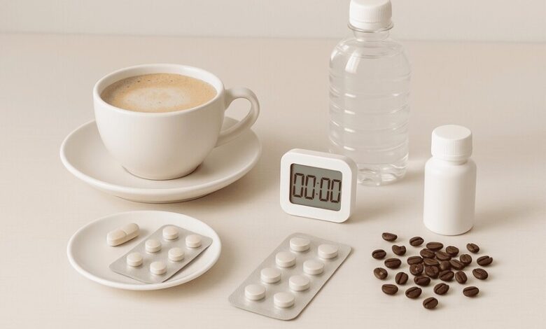 ويُفضل تناول المكملات الغذائية قبل ساعة إلى ساعتين من شرب القهوة أو بعد مرور ساعتين على تناولها لضمان أفضل امتصاص للعناصر الغذائية.