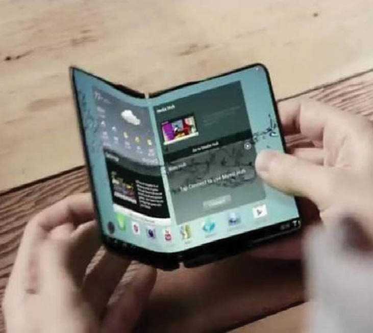حصلت سامسونغ على براءة اختراع لتصميم مختلف تماما يسمع للهاتف بالطي إلى جزئين كما يمكن تحويله ببساطة إلى جهاز لوحي عن طريق فتح الطي، وتكشف وثيقة الاختراع عن جهاز ذات شاشة ضيقة تنحني وتنطوي مثل هواتف المدرسة القديمة، ويوصف الجهاز بوصفه قابلا للطي والفتح بسهولة. وتشير براءة الاختراع إلى مرونة الجهاز ووجود شاشة ثانوية تنشط عند طي الجهاز حسبما أفاد موقع “انترناشونال بزنس تايمز”، وزعم الموقع الكوري “ETNews” أن المنتج يطلق عليه اسم “سمارتليت” داخليًا ويضم شاشة بحجم 7 بوصة عند فتحه بينما تتحول الشاشة إلى 5 بوصة عند طي الجهاز، وتبدأ سامسونغ في إنتاج الجهاز هذا العام لإصداره عام 2017، وأمضت الشركة 3 سنوات في تطوير هذه التكنولوجيا. ويطلق على الجهاز اسم “Foldable Valley”، ويستفيد من الشاشات البلاستيكية القابلة للطي التي طورها قسم الشاشات لدى سامسونغ ، وأوضح رئيس قسم الشاشات لي تشانغ هون في لقائه مع المستثمرين كانون الثاني أنه “يتم تطوير شاشات قابلة للطي وفقًا لخطتنا ونخطط أيضًا للإنتاج الشامل من خلال المناقشة مع شركائنا”، وذكرت الشركة العملاقة سابقا أنها ستطلق جهازًا قابلًا للطي عام 2016، فيما أشارت شائعات من بلوق “SamMobile” إلى أنه يجري اختبار الجهاز في الصين، وأوضح أحد المصادر المطلعة أن الجهاز يتم إنتاجه في إطار مشروع باسم Project Valley، ويتم اختبار إصدارين من الهاتف أحدهم يعمل بمعالج سنابدراغون 620 والأخر بمعالج سنابدراغون 820. ويشاع أن الجهاز يضم 3 غيغا من الذاكرة العشوائية وفتحة واحدة لبطاقة الذاكرة وبطارية غير قابلة للإزالة، وأعلنت سامسونغ عن شاشة أوليد القابلة للإنحناء في مؤتمر CES 2013، موضحة أنه يمكن استخدام البلاستيك في الشاشات القابلة للطي بدلا من الزجاج بحيث يمكن طيها دون أن تنكسر، إلا أن بعض المحللين أوضحوا أن هذه الشائعات ربما تكون غير صحيحة، وتطور LG أيضا شاشات قابلة للطي، وظهرت إحداها عام 2014 بحجم 18 بوصة بدقة فائقة والتي تستخدم فيلم مخصص لها بدلا من الخلفية البلاستيكية، ما يسمح بطي الشاشة وتحويلها إلى أنبوب ضيق.