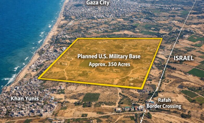 النقطة التالية التي وجب الانتباه لها فتتعلق بما كشفته صحيفة “الغارديان” البريطانية بشأن وثائق حصلت عليها تكشف عن أن إدارة الرئيس الأمريكي دونالد ترامب تخطط لبناء قاعدة عسكرية ضخمة في قطاع غزة، تمتد على مساحة تزيد على 350 فداناً وتتسع لنحو 5000 فرد… وتشير الوثائق، الصادرة عن مجلس السلام، وفق الصحيفة، إلى أن الموقع سيكون بمثابة قاعدة عمليات عسكرية لقوة حفظ سلام دولية مستقبلية، كما تشير الصحيفة إلى أن الخطط تتضمن إنشاء مركز عسكري على مراحل، تبلغ أبعاده النهائية 1400 متر في 1100 متر، وتحيط به 26 برج مراقبة مدرعا مثبتا على مقطورات، بالإضافة إلى ميدان للرمي وتحصينات ومستودع للمعدات العسكرية. وستكون القاعدة بأكملها محاطة بالأسلاك الشائكة.