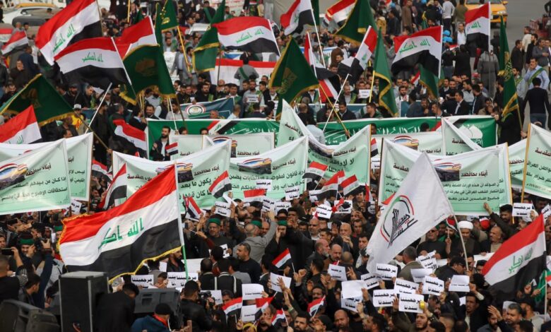 عراقيون يساندون إيران باحتجاجات رافضة للعدوان الأمريكي