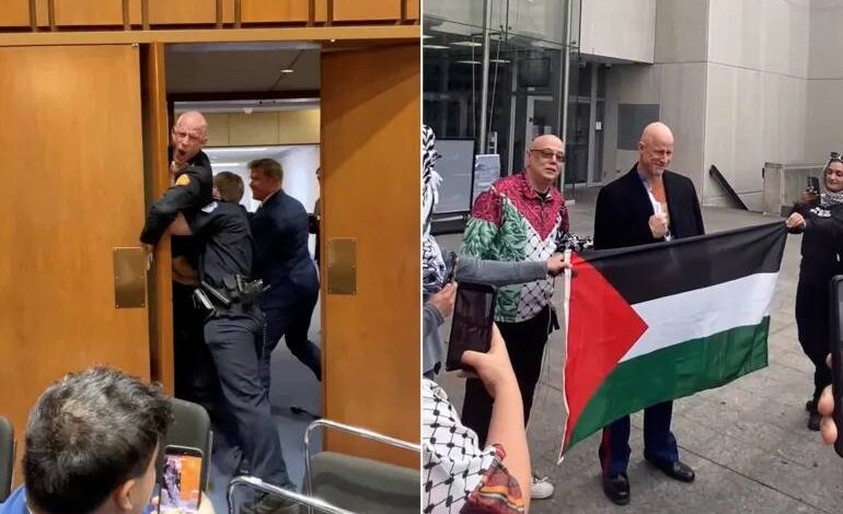 وخاطب ماكغينيس مجموعة من النشطاء عقب خروجه من السجن قائلا: “لقد أقسمت على الدفاع عن هذا البلد من الأعداء في الخارج أو الداخل، لكننا اليوم نواجه أعداءً من الداخل، فقادتُنا متورطون ومتواطئون مع إسرائيل ويقودون الولايات المتحدة إلى حروب غير مبررة، وعلينا أن ننتفض على ذلك”.