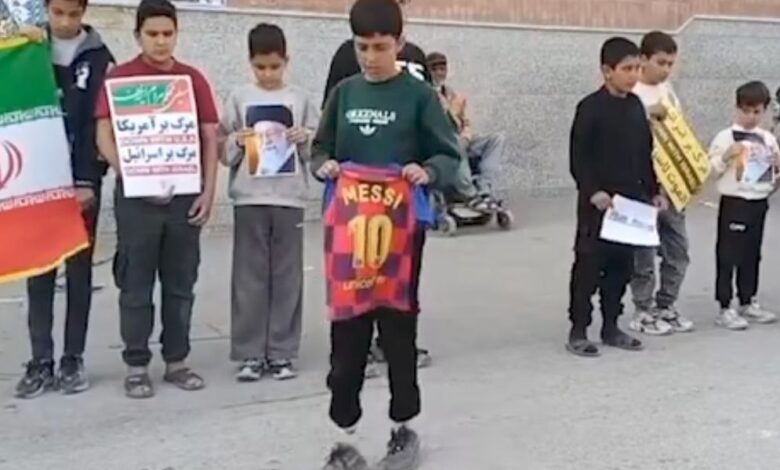 أطفال إيرانيون يحرقون قميص ميسي بعد ظهوره مع ترامب