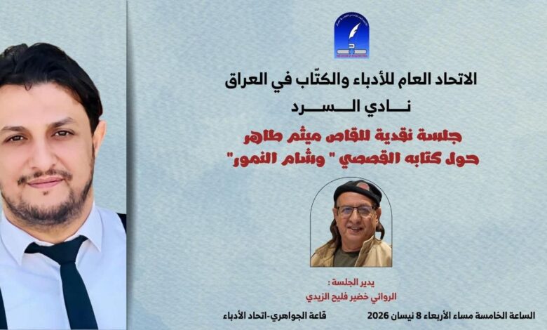 وتابع، أن “الجلسة ستقام في الساعة الخامسة من مساء يوم غد الأربعاء ٨ نيسان ٢٠٢٦ على قاعة الجواهري-اتحاد الأدباء وسيديرها الروائي خضير فليح الزيدي الذي يعد واحدا من أبرز كتاب القصة القصيرة والرواية العراقية خلال السنوات الأخيرة”.