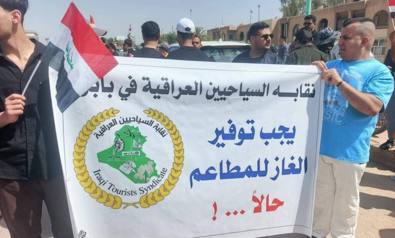 وحمل المحتجون لافتات أمام دائرة المنتجات النفطية في الحلة تدعو الحكومتين الاتحادية والمحلية، ونقابة السياحيين العراقيين فرع بابل إلى توفير الغاز لهم، وايجاد حل لهذه المشكلة، مؤكدين، أن نقص الغاز يهدد مصدر رزق آلاف الأُسر.