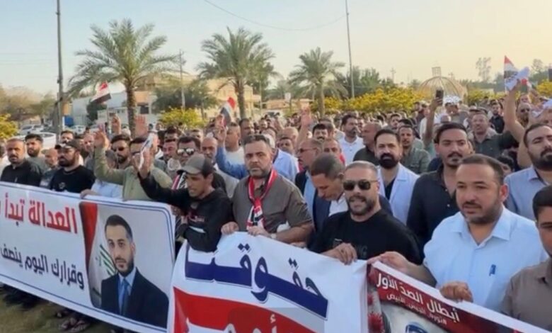 تظاهر المئات من الكوادر الطبية والعلاجية التابعة لدائرة صحة النجف الأشرف ،في ساحة الصدرين وسط المحافظة ، للمطالبة بتخصيص أراض سكنية لهم.
